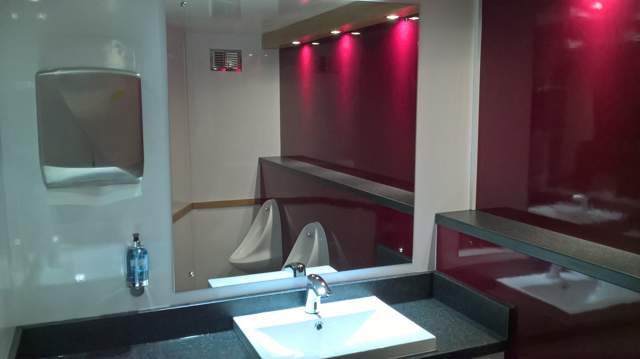 Where space may be at a premium, or for smaller events, we would recommend the Deco 2+1 (green exterior). For the ladies there are two toilets and two hand basins; for the gents – one toilet, two urinals and two hand basins. Caters for up to 150 people over an 8 hour period. (Layout may vary)