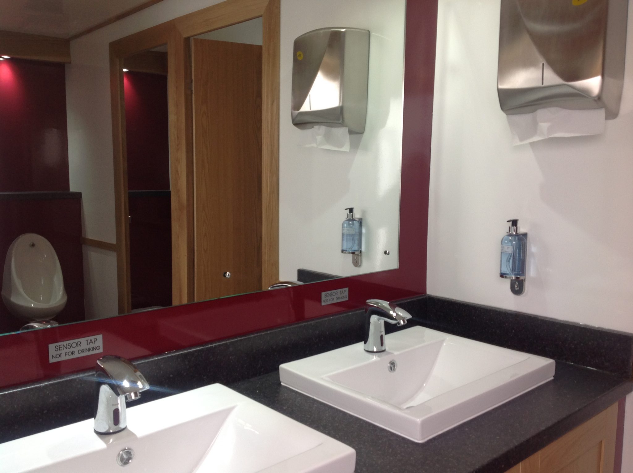 Where a large number of guests are expected, the ‘Deco’ 3+2 comes into its own. With a green exterior, it features three toilets and two hand basins in the ladies section and two toilets, three urinals and two hand basins in the gents. Caters for up to 250 people over an 8 hour period. (Layout may vary)